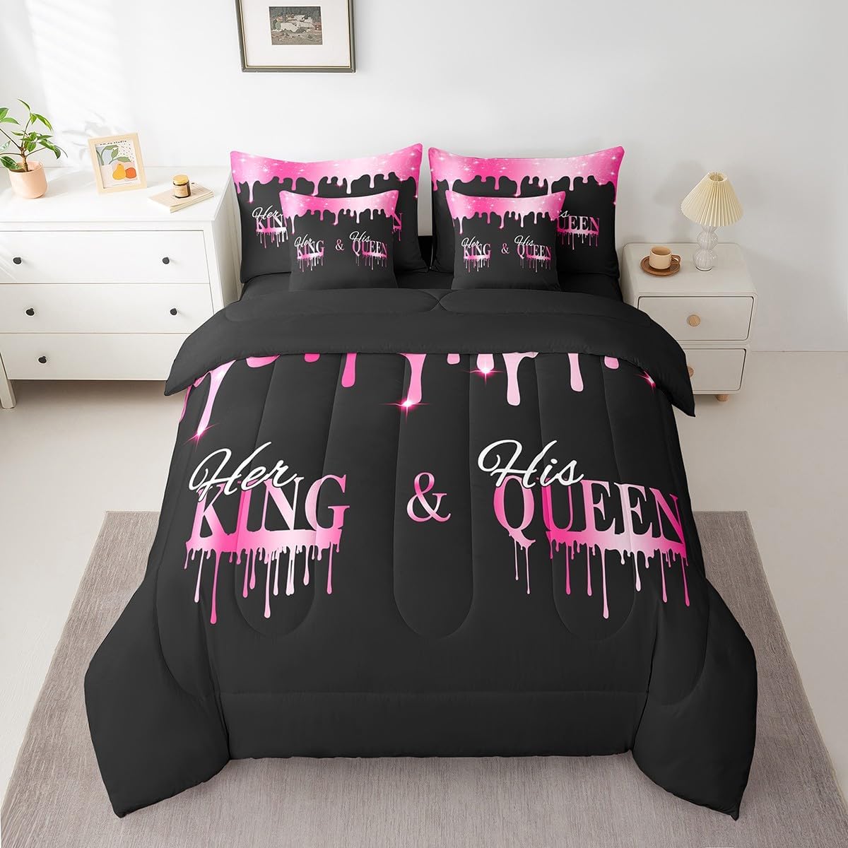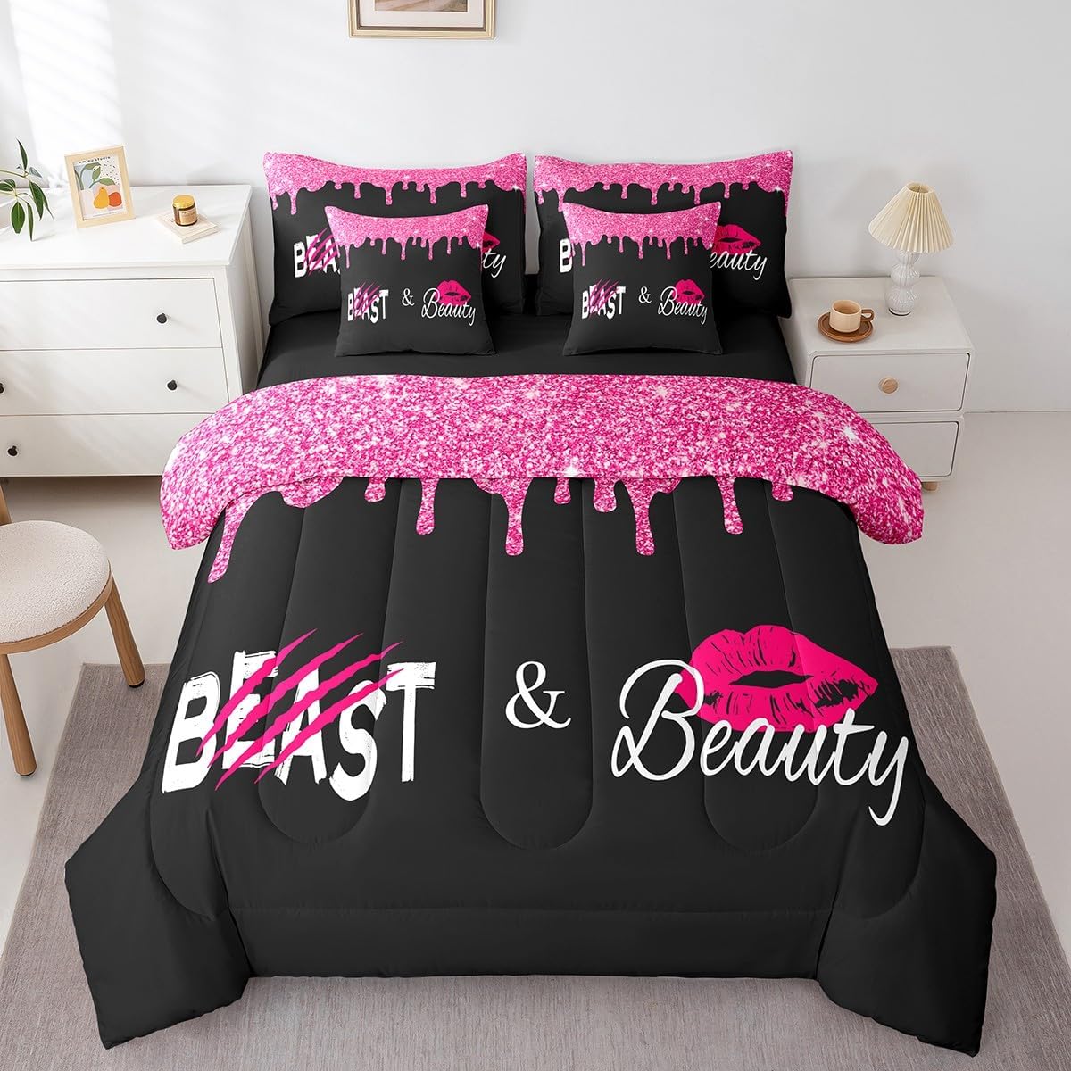 Why choose us Everyone has their own preferences; we develop different styles and different designs to suit the hobbies and aesthetics of different people; we look forward to bringing more joy and fun into your life; special design for special you; it's not just a simple home product, it's a way of life Brighten up your bedroom with this bed linen set; this bright and colourful bedding set features vibrant colours and special print pattern; turn the reversible duvet set over for a new look against a modern geometric background Convenient to use due to polyester which is super soft and comfortable; this all year round bedding is designed to be lightweight and breathable for a good night's sleep; a practical product for homes, dormitories, hotels, guest rooms Twin bedding set includes 1 twin comforter: 68"x90", 1 fitted sheet: 39"x75"x16", 1 flat sheet: 66"x96", 2 Pillowcases: 20"x30", 2 square pillow covers: 18"x18", perfect for a twin size bed. Full bedding set includes 1 full comforter: 79"x90", 1 fitted sheet: 54"x75"x16", 1 flat sheet: 81"x96", 2 Pillowcases: 20"x30", 2 square pillow covers: 18"x18", perfect for a full size bed. Queen bedding set includes 1 queen comforter: 90"x90", 1 fitted sheet: 60"x80"x16", 1 flat sheet: 90"x102", 2 Pillowcases: 20"x30", 2 square pillow covers: 18"x18", perfect for a queen size bed. King bedding set includes 1 king comforter: 104"x90", 1 fitted sheet: 78"x80"x16", 1 flat sheet: 90"x106", 2 Pillowcases: 20"x36", 2 square pillow covers: 18"x18", perfect for a king size bed. In addition to this comforter set with sheets, there are curtains, area rugs, shower curtains, blankets and other furniture with the same design waiting for you to explore. Whether it is for birthday of your family or friends, relatives, or just for yourself, the item should be interesting and authentic.